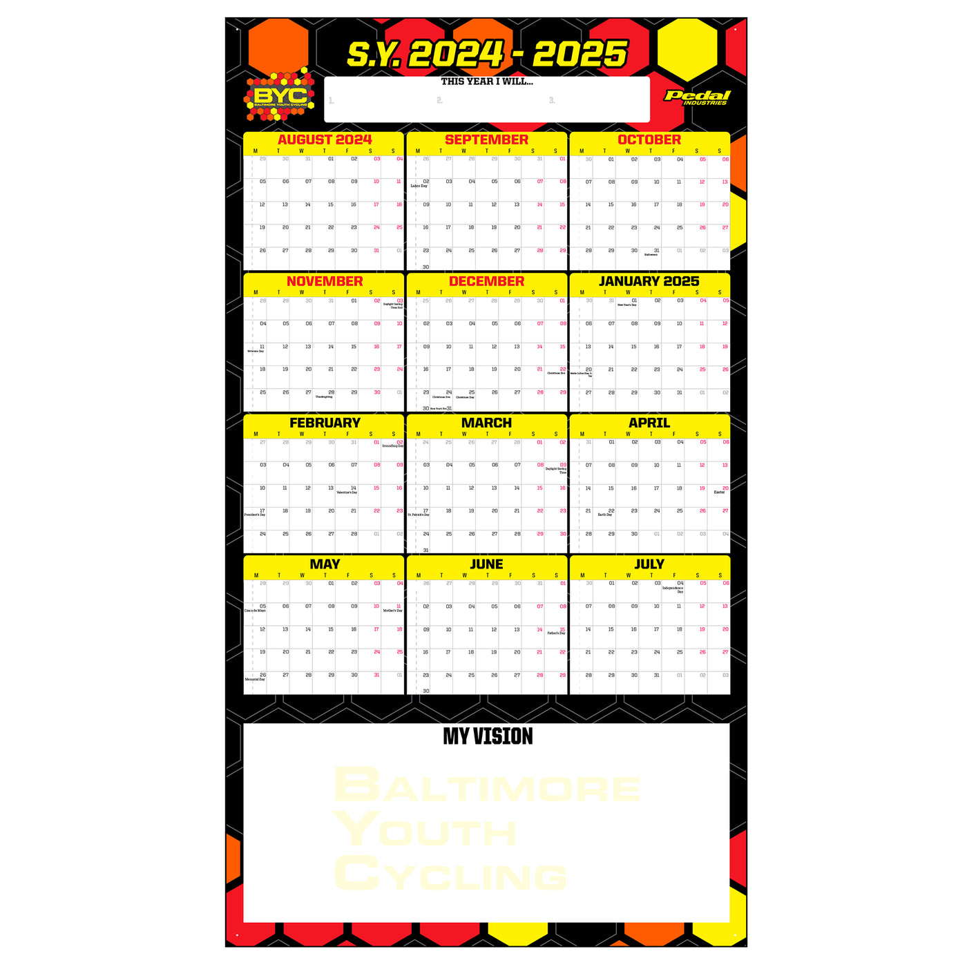 Baltimore Youth Cycling 2025 GIANT MY RACEDAY CALENDAR (AUG-JUL) - (SCHOOL TEAMS)