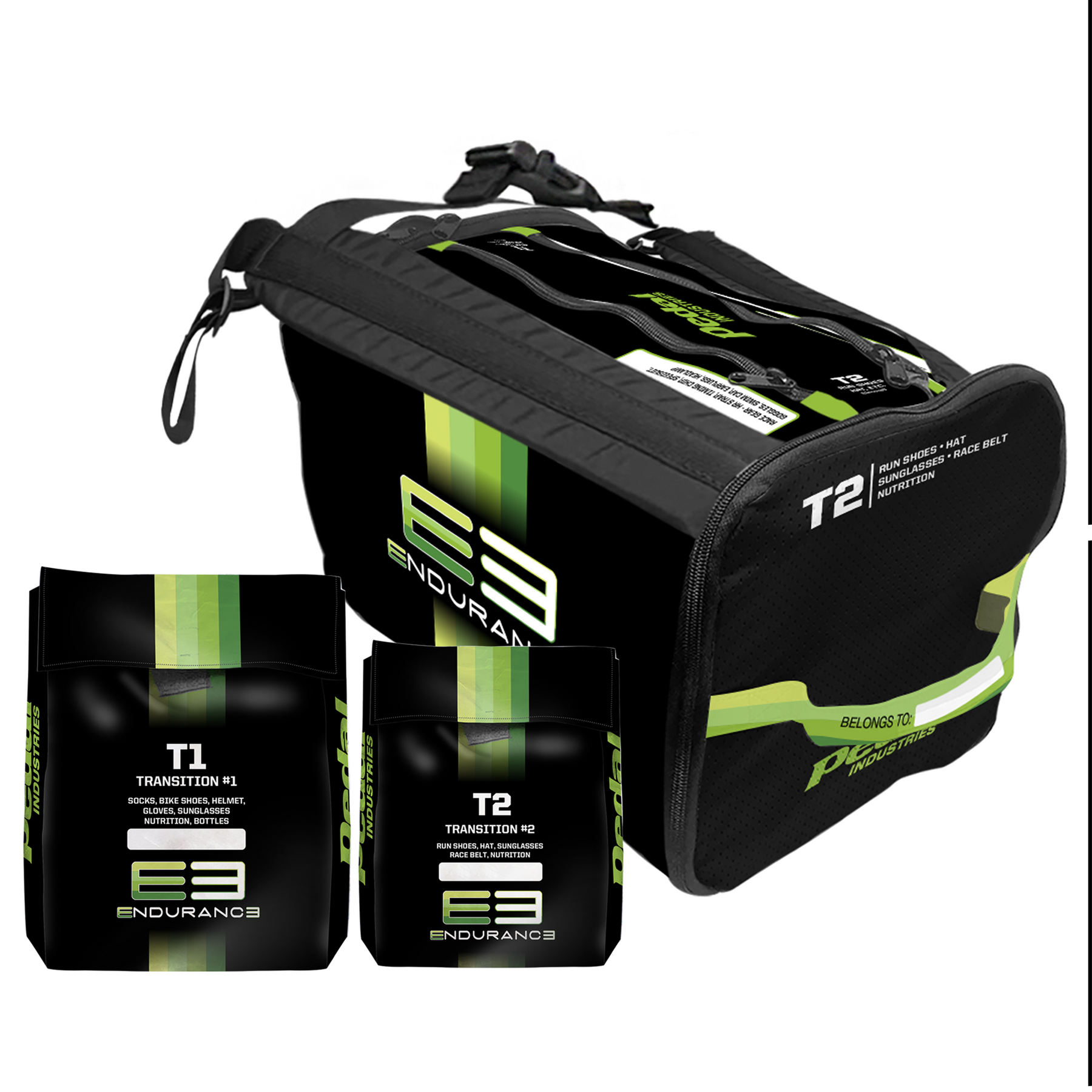 If you add the T1 & T2 Bags, you will receive special matching bags to keep your transition gear together and protected from the elements when staging the day before your triathlon.